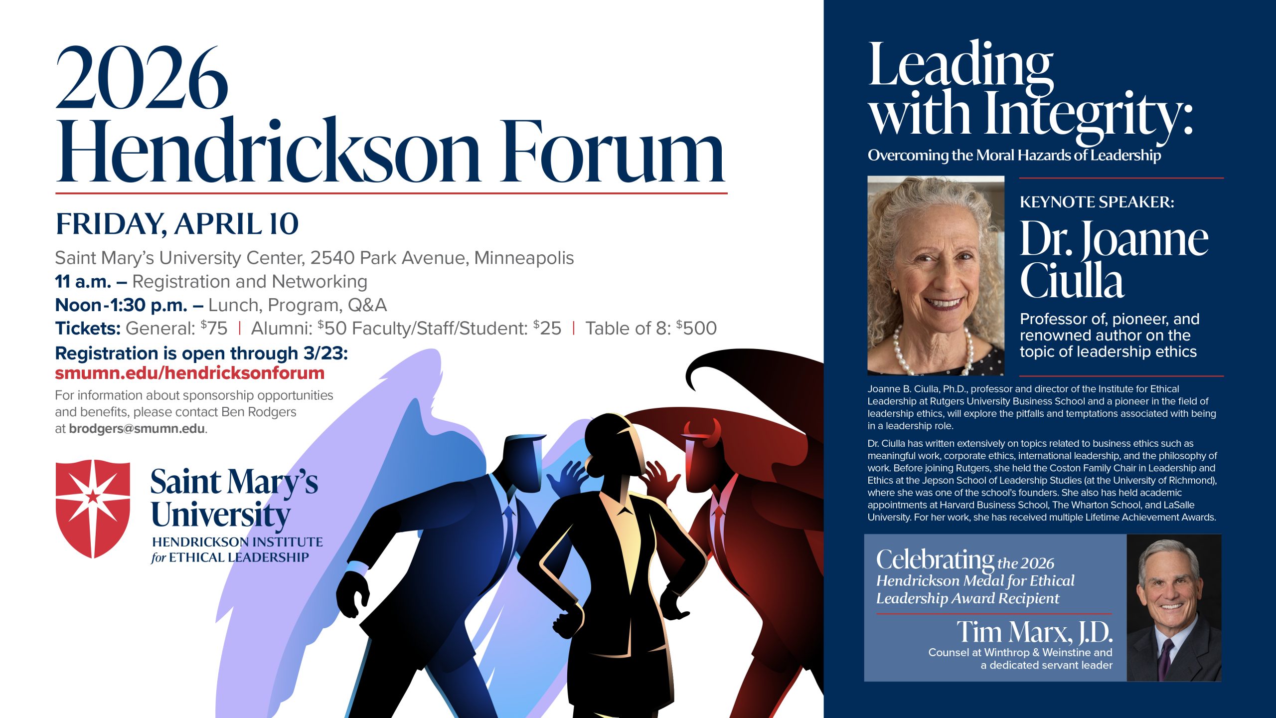 Each year Saint Mary’s University of Minnesota welcomes an internationally recognized speaker as it engages the public in important, thought-provoking conversation and discussion during its Hendrickson Forum. This year’s keynote,...